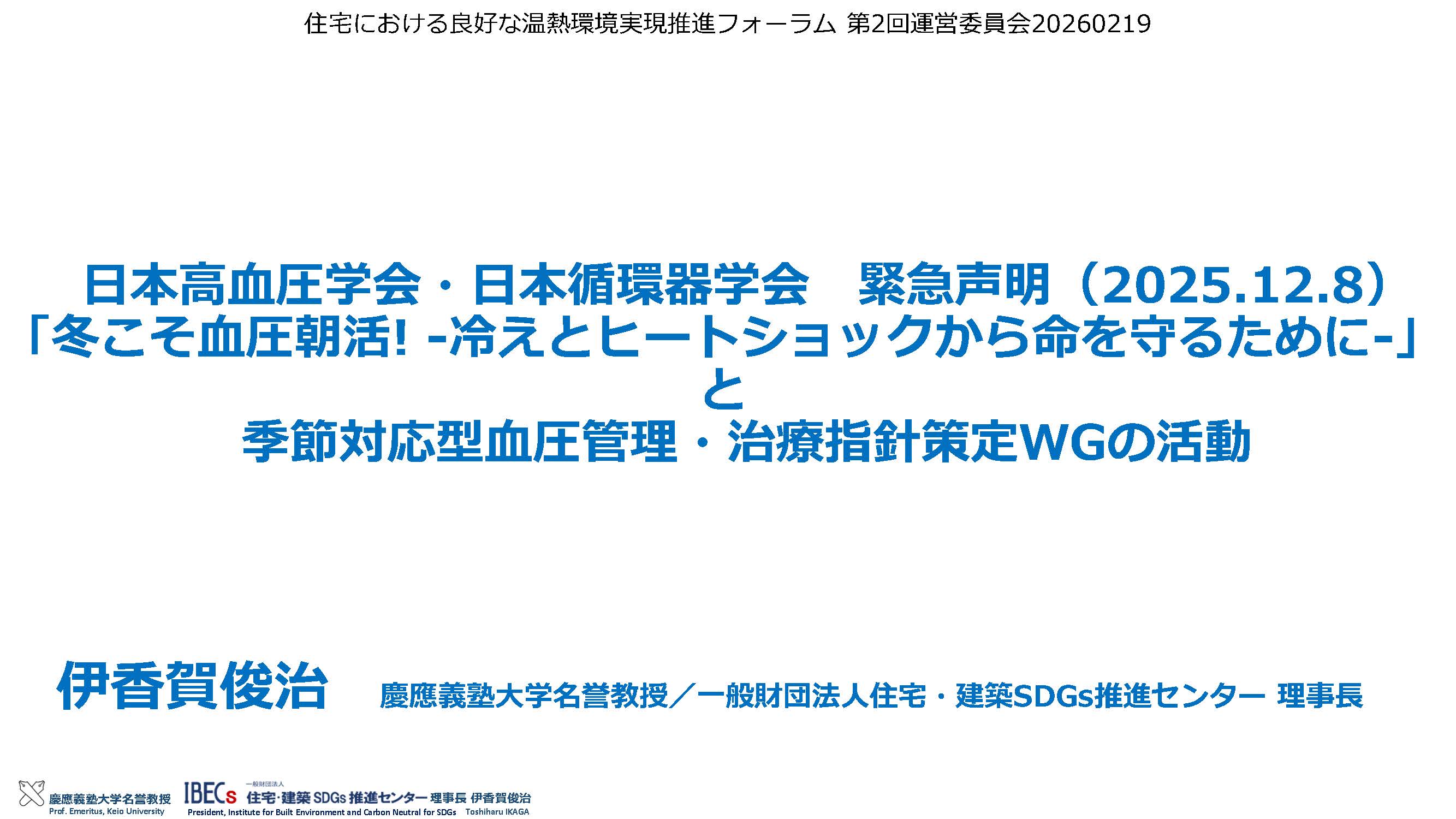 室温が住民の健康に及ぼす影響について、第一人者である伊香賀俊治慶應義塾大学名誉教授による研究成果がわかりやすく解説されています。データ等の無断転載は、ご遠慮ください。